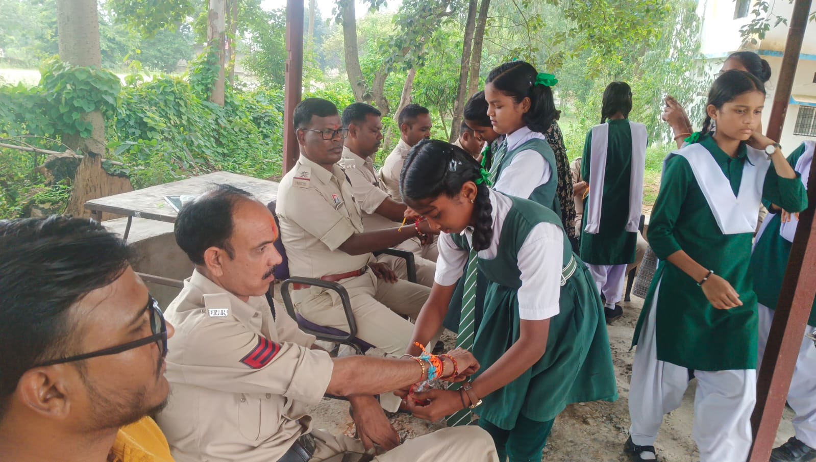 दरअसल रक्षाबंधन के दिन *स्काईरिच स्कूल उदयपुर* की छात्राओं ने प्राचार्य रामप्रसाद गुप्ता के कुशल निर्देशन में शिक्षिका रुविना अली तथा तुलसी पांडेय उदयपुर थाना पहुंचकर थाना प्रभारी सहित समस्त पुलिस भाइयों की कलाई में राखी बांधी। छात्राओं ने राखी बांधने के साथ ही आरती उतारी और मांथे पर तिलक लगाकर पुलिस भाइयों के प्रति आदर भाव प्रकट किया सभी छात्राओं ने उनके उत्तम स्वास्थ्य सुरक्षा और सुदीर्घ जीवन की मंगल कामना की